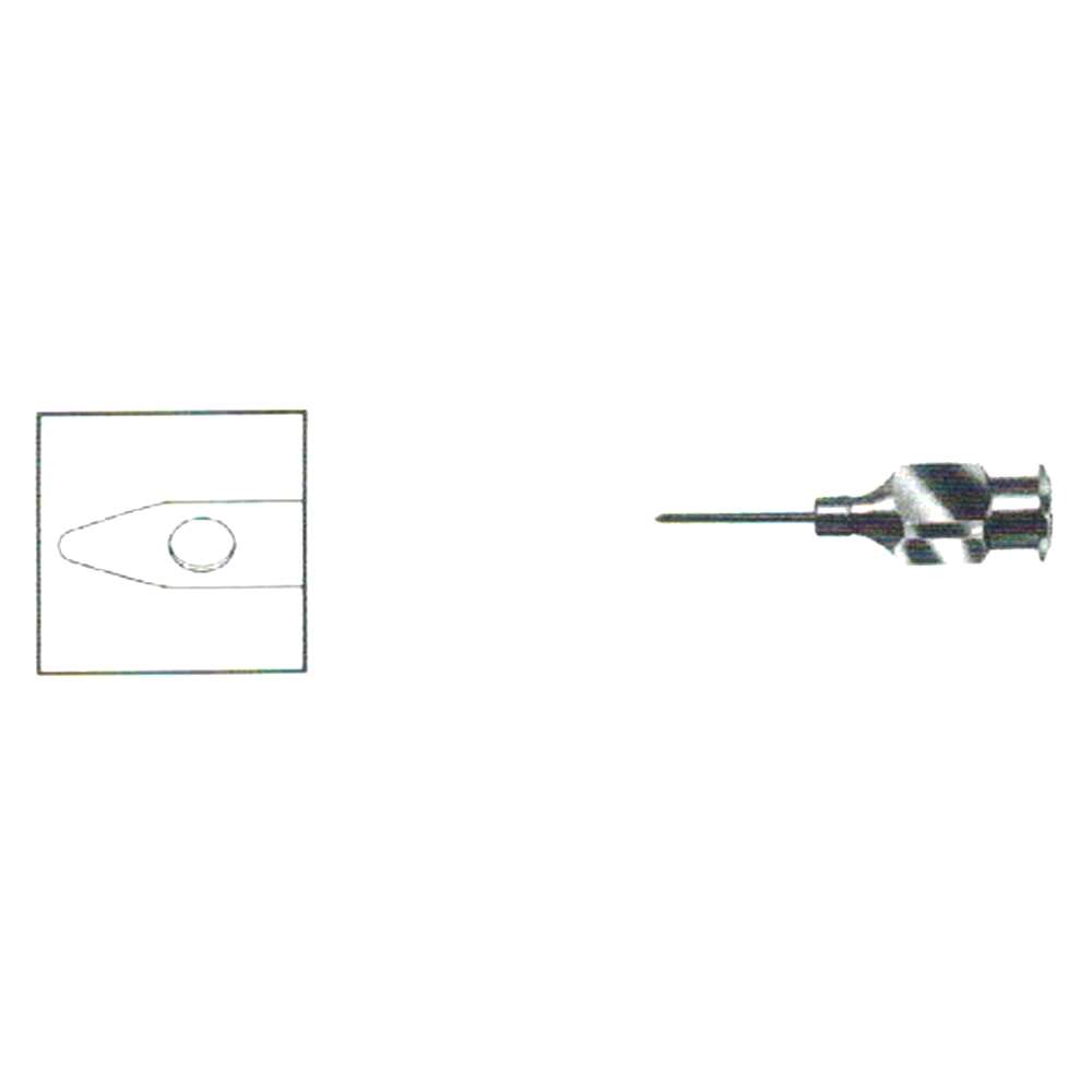 23 gauge cannula with blunt tapered tip and side port. Straight
